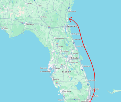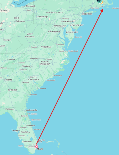 We expected it to take a week, tops. Leave Fort Lauderdale and draw a line to Narragansett Bay and there you go.