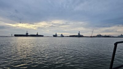 When I woke up, because offshore sailing is basically a repetition of eat-sleep-sail, I woke up just before sunrise and Todd and Tom were on watch. Norfolk is a massive navy base and we passed navy ship after navy ship on our way from the Chesapeake Bay Bridge Tunnel all the way west to Norfolk. Once we arrived, Tom would be leaving us and another new friend Steve would be joining us.