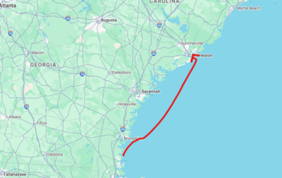 I was asleep when the decision was made. Todd was on watch and Fred was in support on a night watch. The wind had turned against us. On the radar they could see storm cells surrounding us. Over the course of the night they only made like 20 miles of progress, when we had made like 80 the night before. We were bashing into the wind and not getting anywhere, which as you can imagine is pretty frustrating. When I woke up we were heading west, directly for Georgia just north of the Florida/Georgia state line when we ducked in to anchor at St. Mary’s to take a rest.