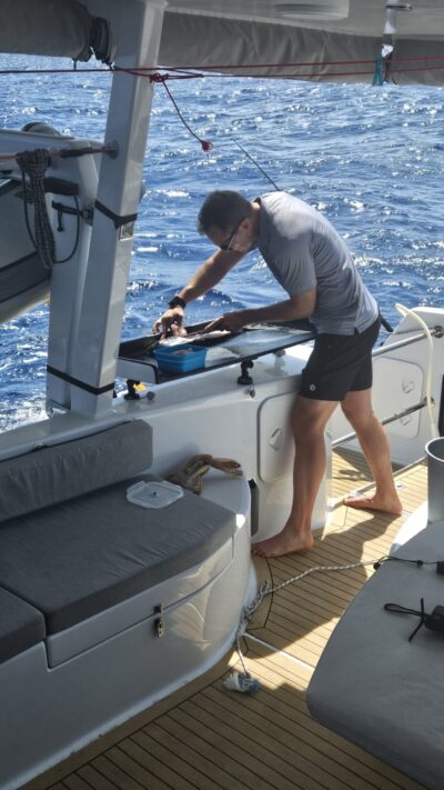 Internet access while aboard and while offshore is done with Starlink. So the boat has a wifi bubble around it that we can access and do things like video calls for job interviews, and download or stream content. Though offshore we try to avoid streaming just so we can be sure we have the bandwidth for emergency use. I did the interview, and I thought I crushed it. Sadly I didn’t get the job, however.